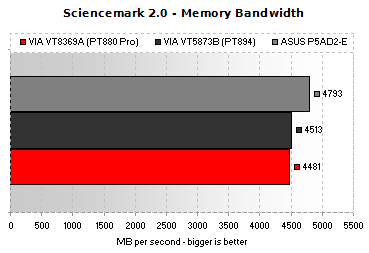 The slower DDR400 memory available on the VIA boards gives rise to less bandwidth, which was to be expected. Remember both core logic sets support DDR2-667 memory.
