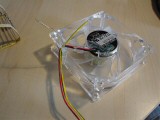 I am a real difficult person when it comes to fan choice, I want really quiet fans that look nice and can be controlled easily. I've not yet found my ideal fan but the best comprimise solution I've come across is the Coolermaster LED fans, they are clear fans with 4 LED's for lighting (RED. BLUE , GREEN , WHITE or PURPLE in colour). The fan is quite quiet at stock speeds and can be modified to make them quieter. They are more importantly very cheap in comparison to the normal quiet fan options. I sourced four 80mm white versions for this project. One for the CPU Fan, one for the PSU, and two for the case cooling. (There are only three in the pictures unfortunatly but you get the idea)